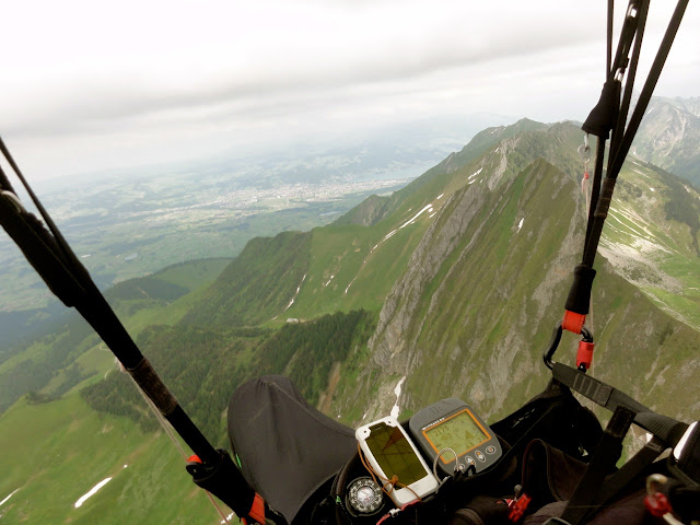 Joli vol ouaip, 1e fois vers les Voirons pour moi, et essai de la Peak3. Bon, je vache après la traversée de la Dranse, avant la plaine entre Thonon et Evian. J'étais un peu bas, pas trouvé la solution. Alvise, devant moi, oui. Bravo. Nous sommes partis trop tôt (hein Martin!). A 11h30. 13-14h c'était mieux. Même 15h. Peak3, excellente voile, très à l'aise dessous malgré mon passage de B à D. Mais... vais-je vraiment passer à cette catégorie? tellement bien sous une B. Merci à Patrick Roser pour le prêt.
