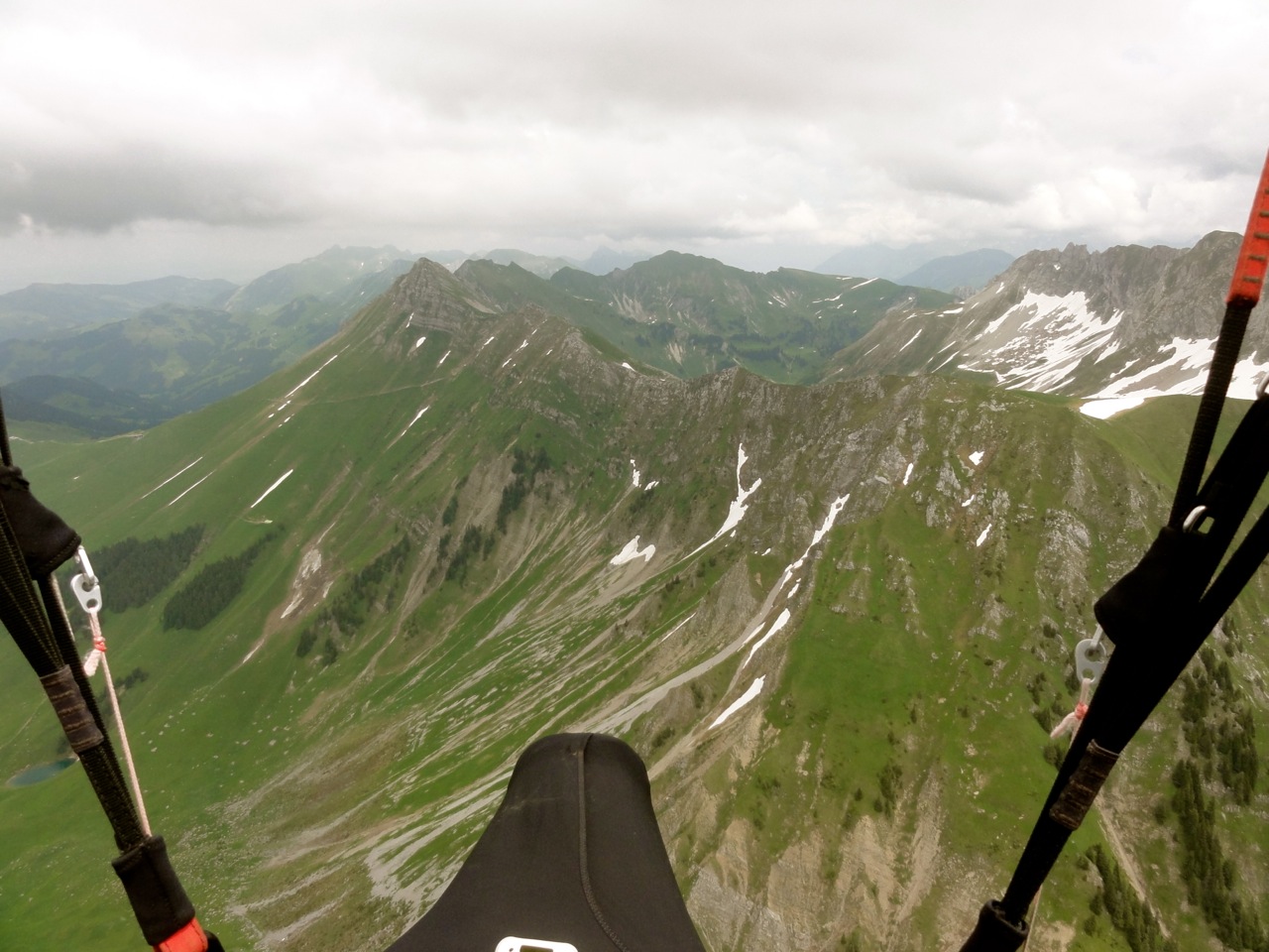 Voile très solide et performante, accélérateur facile à pousser, stable ne accélération, passant sous le vent d'un thermique et d'un relief elle m'a fait des figures flippantes, mais tout c'est bien passé pour finir. Le soir (2e vol vers 20h), j'ai essayé les "oreilles-qui-n'en-sont-pas" avec les B3, elle se cabre en U et je perds 3-4m/s, mais la symétrie et la direction est difficile à maintenir. La 2e fois, j'ai dû tirer un peu fort, elle est partie en décro, mais avant le full-stall j'ai vite relâché m'attendant à une catastrophe. Elle m'a fait qq abattées peu symétriques que j'ai rattrapé comme j'ai pu. Pas de sketch, mais étant peu habitué à voler avec ces machines, ça m'a fait un peu peur.